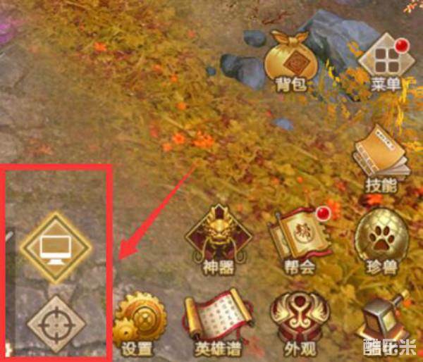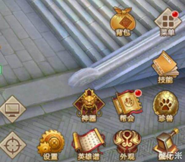 功能界面中主要是背包,技能,神器,暗器,帮会,珍兽,设置,英雄谱,外观,强化等功能的选项。点击后可以进入对应功能界面。