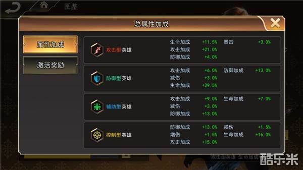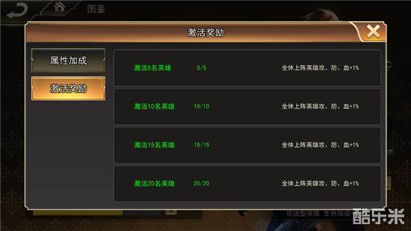 玩家可以通过不断收集新的英雄来激活不同的属性加成,这些属性加成包括增加生命加成,减伤,增伤等等,每位英雄都能提为团队做出贡献。当玩家收集到一定数量的英雄时还能额外解锁图鉴属性哦。在游戏的很多时候,往往这些隐藏属性能起到非常重要的作用,前期的英雄碎片收集自然也是玩家要重点关注的。
