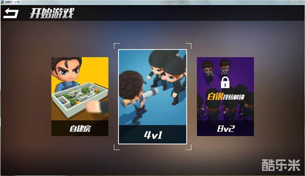 对于新手玩家而言,在达到白银段位前,仅开放“自建房”和“4V1”两种模式,点击“4V1”按钮就可以进入游戏准备界面了。想要体验更多玩法,大家可要努力升级哦!