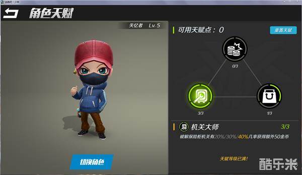 这个天赋的设计偏向于喜欢对抗玩家,在后期保险柜都解锁后,通过与追捕者正面硬刚也有几率触发获得金币,可以作为后期经济来源之一,不过对抗有风险,不是老司机点此天赋需谨慎。
