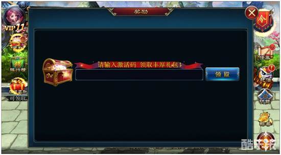 在奖励界面中,有一个特殊的icon--“激活码”。许多玩家在从不同途径获得礼包激活码之后不知道怎么使用,就是这里~点击“激活码”,在输入框内输入您的礼包激活码,就可以领取丰厚礼包啦!