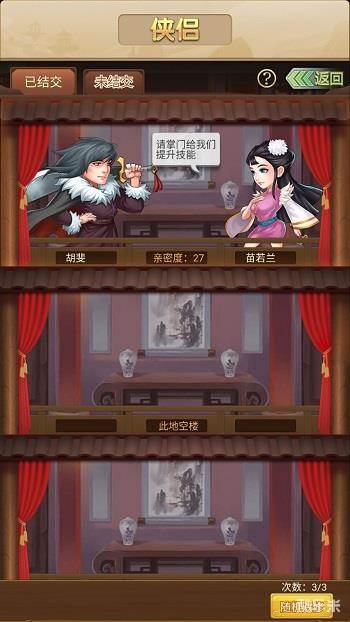 界面下方有个“随机双修“按钮,点击该按钮,可随机获得侠侣技能经验。