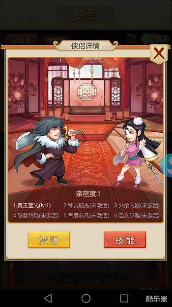 侠侣处有个亲密度,当累计亲密度到一定值时,便可解锁情侣技能。
