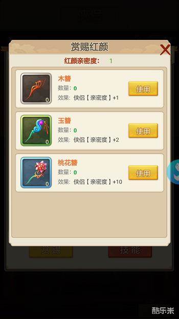 上面讲过,赏赐红颜一些道具,如:木簪、玉簪、桃花簪,可获得相应亲密度;侠侣技能经验可在随即双修获得,各位玩家赶紧去试试吧~