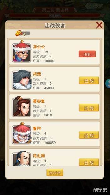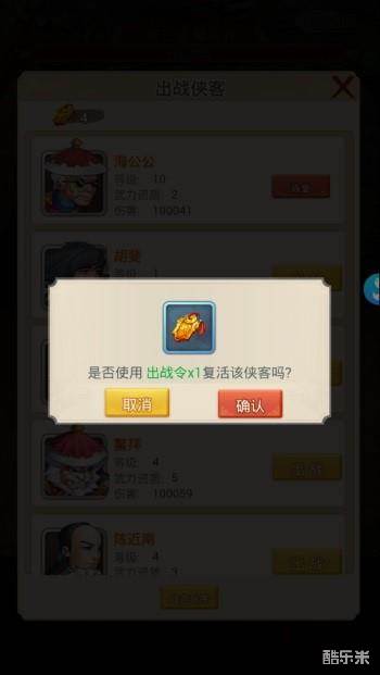 也可以通过消耗掉一个“出战令”恢复受伤的侠客满血复活继续进行战斗。(温馨提示:“出战令”可在剧情通关中获取)