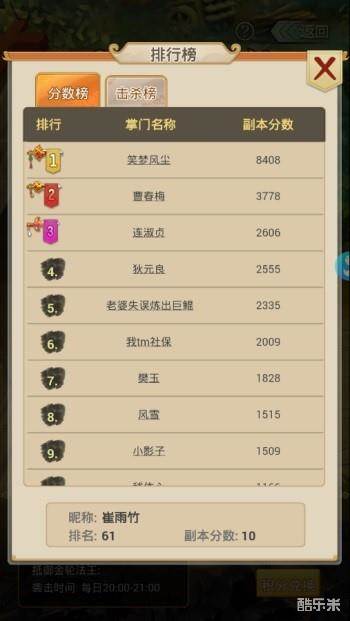 守卫襄阳、为国贡献的玩家们可以在排行榜上看自己的副本积分排名,副本积分越高,获得奖励自然也就越丰厚。
