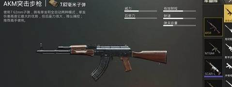 再来是我们的AKM突击步枪了,AKM的近战威力是大家有目共睹的,近战刚枪先手的话,肯定是AKM胜利,虽然射速慢了点,但是子弹威力大,切单点配备高倍镜后,射击手感不比射手步枪差,况且AKM加扩容能装40发子弹,熟练掌握了射击节奏,远处的敌人还不是分分钟就被你解决了!除了不能装八倍镜外,AKM的配件需求较少,一个枪嘴一个弹夹就能满配。