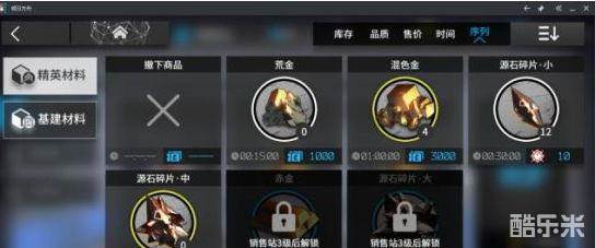 选择要出售的商品,精英材料均可以出售换成龙门币和源石,基建材料如有富裕也可以换成龙门币(前期不推荐)