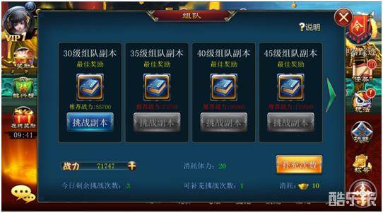 组队副本按照等级,从30级开始,每5级一个新的地图,只有通过前一个副本才能解锁下一级的关卡哦!