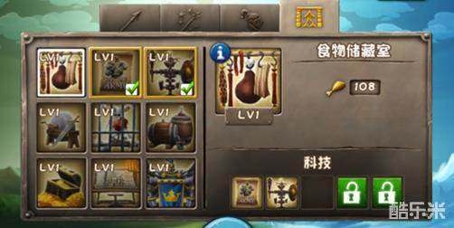 食物储藏室:加快战斗中的食物生产量以及提高食物的最大上限。