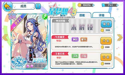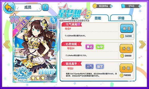 团队效果:提升SII成员全perfect得分,额外提升自身得分。分数加成与持续时间随技能等级而增加。