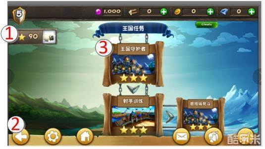 (3)切换主城按钮,用于王国与维京城堡之间的互相切换,于第一章通关之后出现。