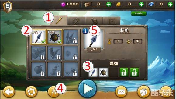 (3)升级按钮,点击进行该弩弹的升级,按钮右方显示升级需要金币数