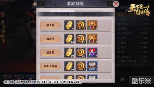 魔神封印结束后会根据剑客造成的总伤害量进行排行,按照排名奖励不同数量的铜钱、金币和魂珠宝箱,最高可获得5星魂珠!每天可以免费挑战5次,如果想争排名还可以购买次数哦。