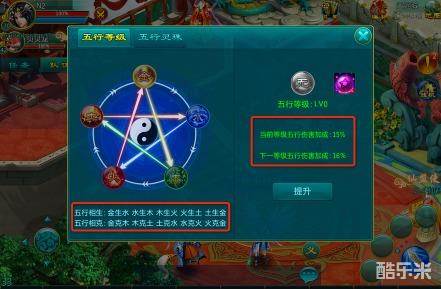 3)消耗五行丹可提升五行等级,每提升1级增加1%的相生相克加成;激活过主属性后,可消耗的五行丹来进行属性切换。