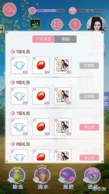 爱情树有一定几率出现虫蛀和缺水的负面状态,出现负面状态后健康值会下降。玩家可以通过浇水和捉虫来解除负面状态,增加健康值。玩家选定的男主角会在爱情树界面和玩家对话,增加爱情树的成长值。此外,玩家可用肥料增加爱情树的健康值,如果使用高级肥料还能增加成长值。