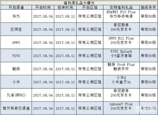 此外,本次玩家福利周不分渠道全服狂欢,应用宝、UC还有各种手机品牌游戏渠道都可参与,将各品牌手机、微单、京东卡等超实用高价值实物作为福利礼品相送。同时,本次福利周参与条件很低,玩家达到50级,100年道行,连续登陆3天且任意一天活跃度达到100,同时完成力擒恶匪任务即可。下图曝光本次福利周将送出的实物礼品,还在等什么,快来参与吧!