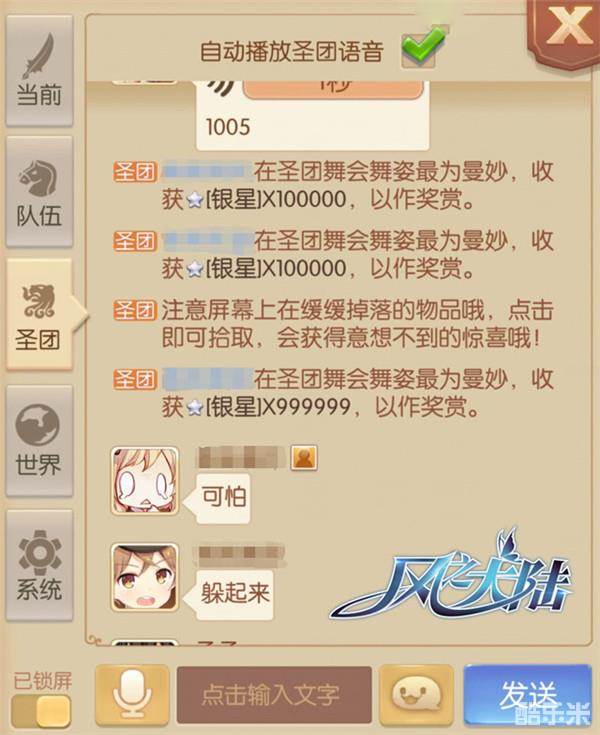 围绕篝火,点击左上角起舞提示,一起跳舞~如果圣团舞会起舞人数满了也不要担心,只要在舞会场地都能沐浴经验雨,同时注意屏幕从天上掉落的礼物,点击拾取即可获得惊喜:玛那、银星、藏宝图、雪之章扉页……还有,小狸不知道圣团频道上,泥萌是否曾因为舞姿最曼妙而获得999999的银星奖励?