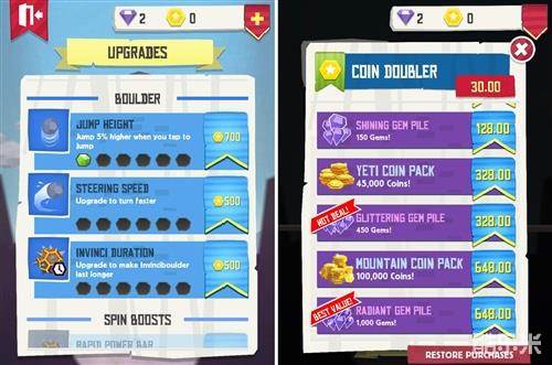 作为一款跑酷游戏,本作的可玩性还算不错,难度随着距离的增加而增加,前进的速度会越来越快,人类设置的障碍物会越来越多,当然,游戏也少不了内购和道 具系统,和其他跑酷游戏一样,玩家可以通关每局获得的金币来提升巨石的各项能力,还可以购买各种增益道具等等,让你滚得更加远,更加带感!想偷懒的玩家可 以关注下【搜苹果】,看看有没有好心的网友提供【无限金币版】(iPad HD版)。
