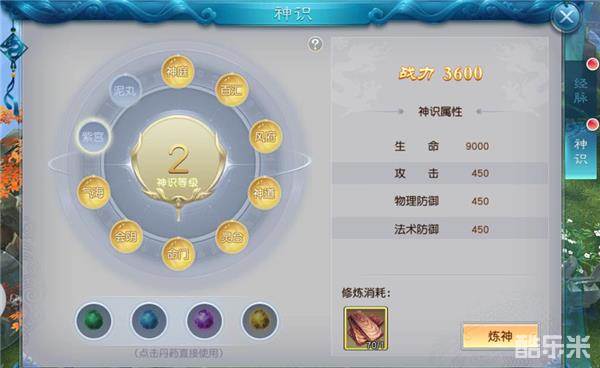 使用神识丹药可增强神识力量,直接增加角色属性。