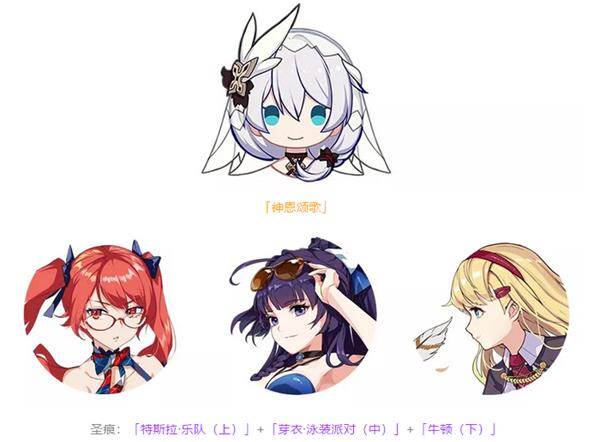 「仿犹大·血之拥抱」的主动技能拥有优秀的破盾能力和浮空效果,搭配「神恩颂歌」可进行多元化阵容搭配,例如需要浮空QTE的「白骑士·月光」、「白夜执事」等,需要破盾QTE的「第六夜想曲」、「空之律者」等。「神恩颂歌」的必杀技或QTE的物理伤害伤害较高,且附加的“脆弱”效果能进一步增强必杀技和「仿犹大·血之拥抱」主动技能的破盾能力。