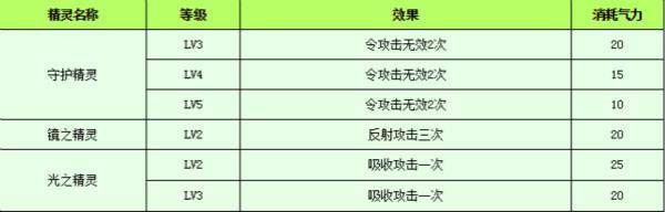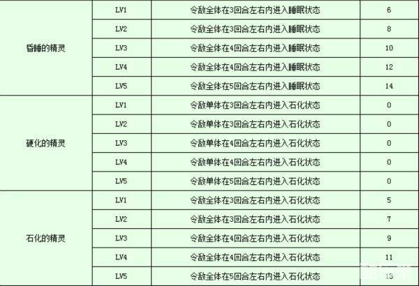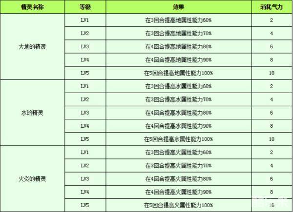 《原始守卫战》里面精灵魔法实用性极强,是PK必不可少的技能类,想要使用咒术,你身上必须装备内含精灵的武器、防具或道具,不然是无法使用咒术的,各种精灵分为以下五个系,不同的精灵系所施展出来的咒术也是不一样的,下面是五大系精灵的咒术表: