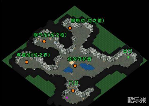坐标:(东433,南742)怪物等级:25~30级怪物种类:兰贝鲁斯、邦洛洛克斯、可利多洛斯6.龙的巢穴