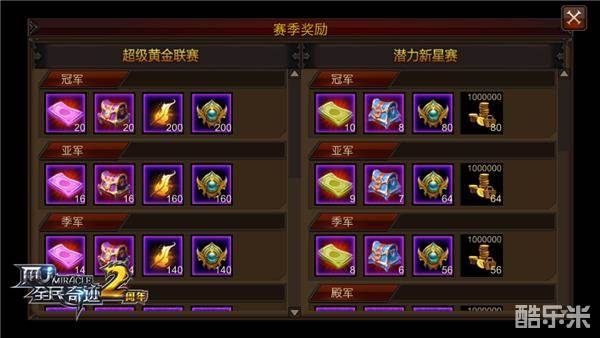 晋级机制自《全民奇迹MU》战盟联赛曝光以来,已然成为了老生常谈的话题,分为潜力新星赛和超级黄金联赛两个段位的战盟联赛,有着区别于传统电竞的晋级机制。在每一个赛季中,超级黄金联赛的战盟数量稳定为8个;赛季结束后,当前赛季超级黄金联赛排名后两位掉出超级黄金联赛,位置由上一赛季潜力新星赛前两名顶替,成为下一赛季黄金联赛的参赛战盟。