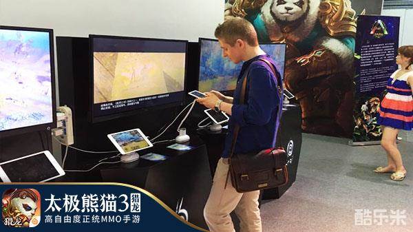 《太极熊猫3:猎龙》的魅力难挡,即使是来自大海另一边的小鲜肉也经受不了诱惑,驻足在试玩区之前。一位来自法国的帅气小哥不由的被《太极熊猫3:猎龙》的精彩大世界猎龙玩法所吸引,一时间成为了试玩区人们关注的焦点。在与他交流的过程中我们了解到小哥居然是一位手游爱好者,本次来CJ就是为了找寻好玩有趣的手游,不自主的就被《太极熊猫3:猎龙》吸引了。