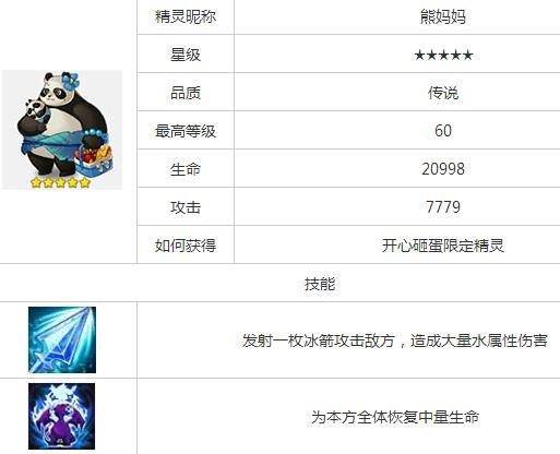 全民精灵熊妈妈快速入手及操作攻略,喂喂喂我说这位熊妈妈您是时候减肥啦,怀里的小熊也太可爱了吧。这么呆萌的小熊我看到都心动了呢,熊妈妈虽然有点壮,但是壮还是有壮的好处的。生命值达到了20998,攻击值是7779,这样看来熊妈妈还是相当不错的呢。