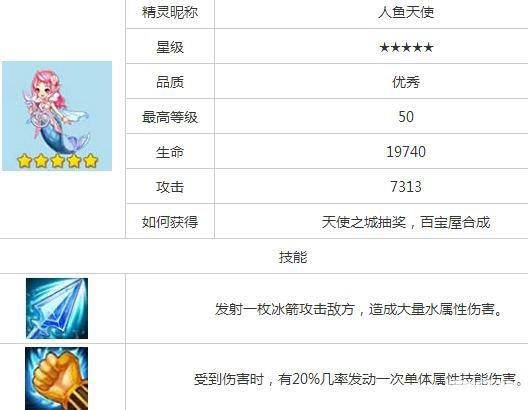 全民精灵人鱼天使降临啦,看到它可爱的模样瞬间就融化了我的内心。玩家们有没有注意到它粉色的长发和淑女的服饰,设计者们也太费心了,把她设计的这么美,我都忍不住多看几眼了。同样人鱼天使也是一个五星精灵,生命值和攻击值也是相当高的哦。