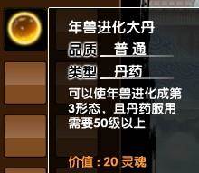 可以使年兽进化成第三形态的丹药!可以在点券商城购买到!