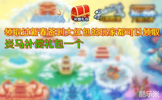 领取补偿礼包前提条件:必须有在春节签到领取过大红包炎马的玩家才能领取补偿礼包。