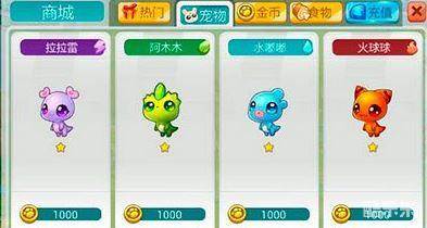 游戏中的宠物类型分为,雷木水火土五类,按照不同的色彩,可以很好的区分它们,紫色-雷、绿色-木、蓝色-水、红色- 火、黄色-土。
