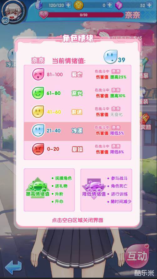 通过和该人物一些交互的行为可以改变当前人物的情绪值
