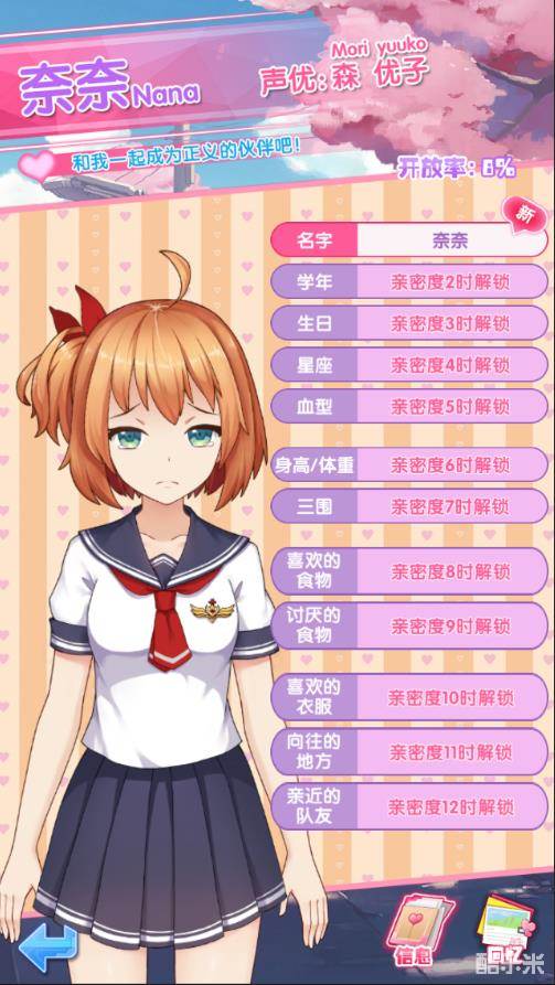 随着亲密度的提高,改人物会逐步解锁自己的资料、回忆小故事;