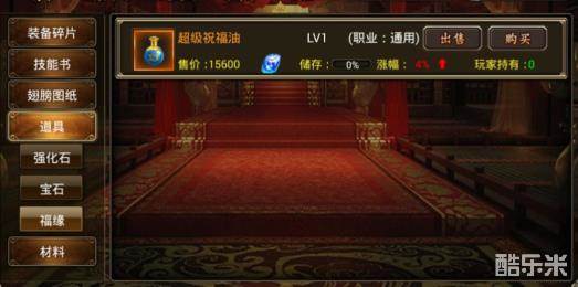 我们祝福武器,肯定需要大量的祝福油,而我们在缺乏祝福油的情况下,可以使用元宝在交易中心的道具选项上购买的。