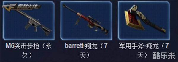 活动持续期间,各位玩家可通过掌上穿越火线领取掌火专属道具,包含M6突击步枪(永久)、barrett-祥龙(7天)、军用手斧-祥龙(7天)在内的实用好礼等待各位玩家领取使用。