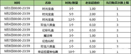 金秋九月,来点别样的惊喜!2018年9月1日 -2018年9月9日,老张的特惠商店,又来搞事情啦!点击世界地图右上角的福利中心,进入特惠充值中的特惠商店即可参与~