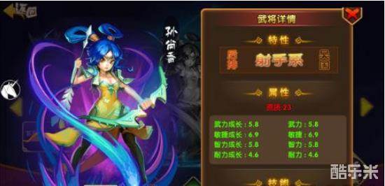 孙尚香是一个23资质的后排射手系武将,在技能方面上,