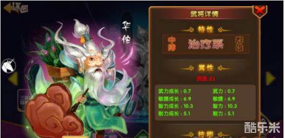 华佗是一个23资质的中排治疗系武将,在技能方面的表现上,