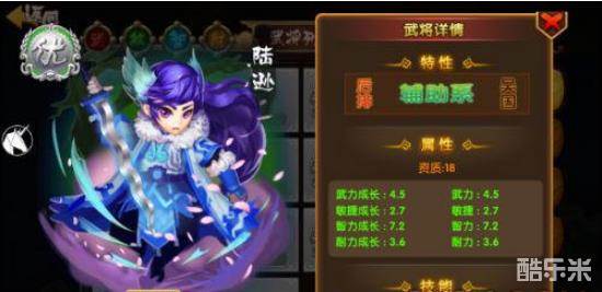 陆逊是一个18资质的后排辅助型武将,在技能方面上,