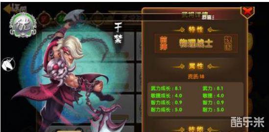于禁是一个18资质的前排物理战士型武将,在技能方面上,