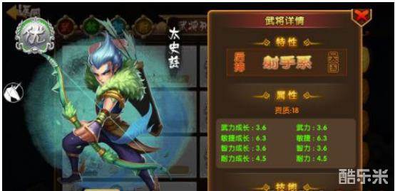 太史慈是一个18资质的后排射手系武将,在其技能上,