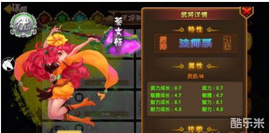 蔡文姬是一个18资质的后排法师系武将,在技能上面,