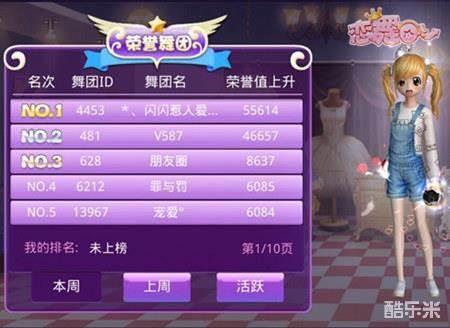 恋舞OL舞团排名上线,排名每周定时更新,小伙伴们还等什么呢?赶紧一起来打造我们的最强舞团吧。