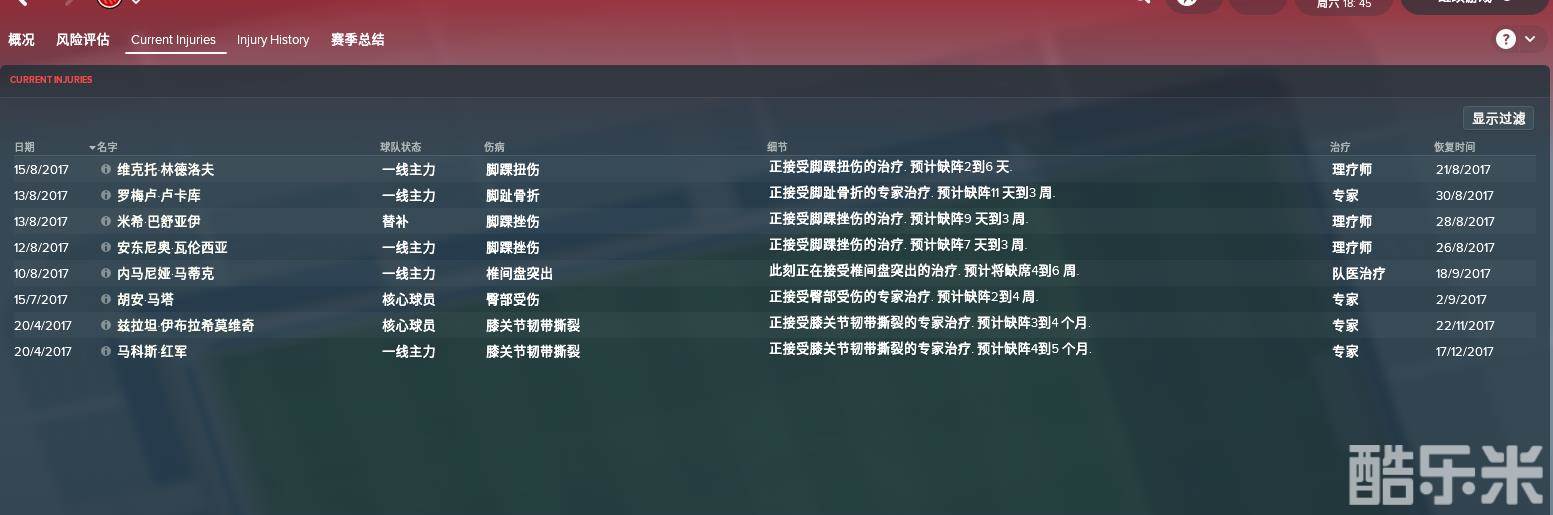 FM2018球员受伤率高怎么办?从前几代开始,很多玩家都发现自己队伍中球员的受伤率非常之高,可是又找不到原因所在,在18的测试版中受伤率也是一个大的问题。所以今天小编就为大家带来了玩家“十刀流”的FM2018测试版训练心得分享,对于训练不是特别清楚的玩家一起过来看看吧。