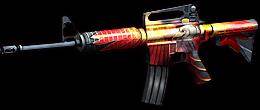| M4A1步枪的超级彩绘涂装版本。拥有强悍的攻击性能,在枪身上的一只展翅腾飞的赤色雄鹰代表了展示勇猛的意志。 | |
