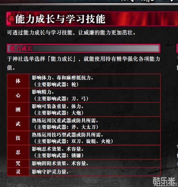 例如上面的图里太刀的反应属性有“心,武,技”三种,也就意味着,拿着同一把武器时,这三个能力越高,对武器的最终面板数值影响更大。