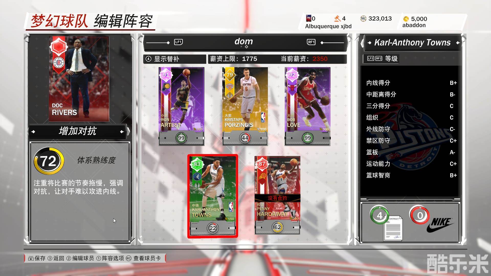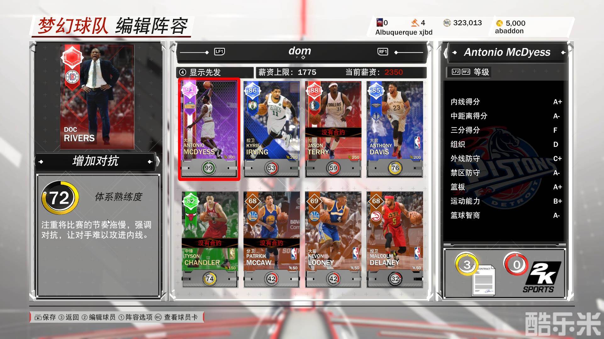 如图所示,用有单吃能力速度快的内线打pg,进攻阵型调成5-out,蹂躏电脑小后卫(亲测糖丝完全能单吃电脑控制的魔术师,前提是你得会沉底步之类的内线技巧,知道怎么打内线)。